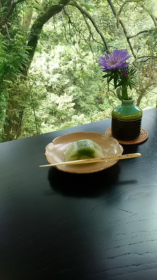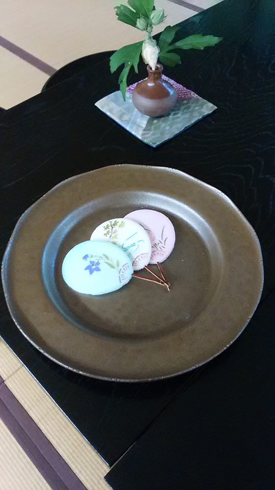 今日7月1日は半夏生です。夏至から11日目です。稲などがよく根付く事をお願いしてタコを食べる習慣があります。床のお花も半夏生をいけました。お菓子は太宰府の藤丸さんの[半夏生]です。また加賀では氷室の日です。もとは雪のように白いお饅頭を食べた習慣ですが最近は中のあんこの区別も出来ますように赤や緑のお饅頭もあります。皆さんもタコや氷室饅頭を召し上がってくださいませ。 |