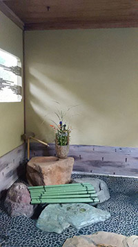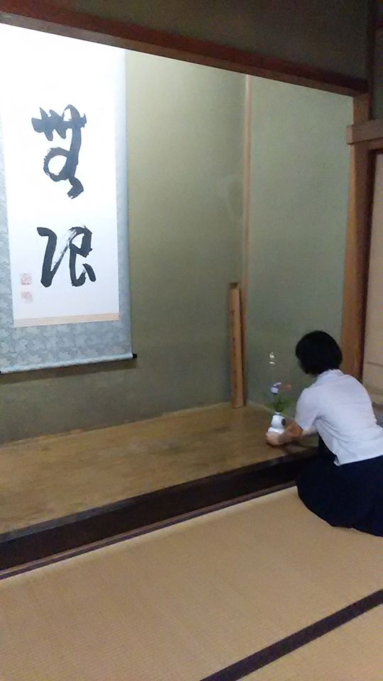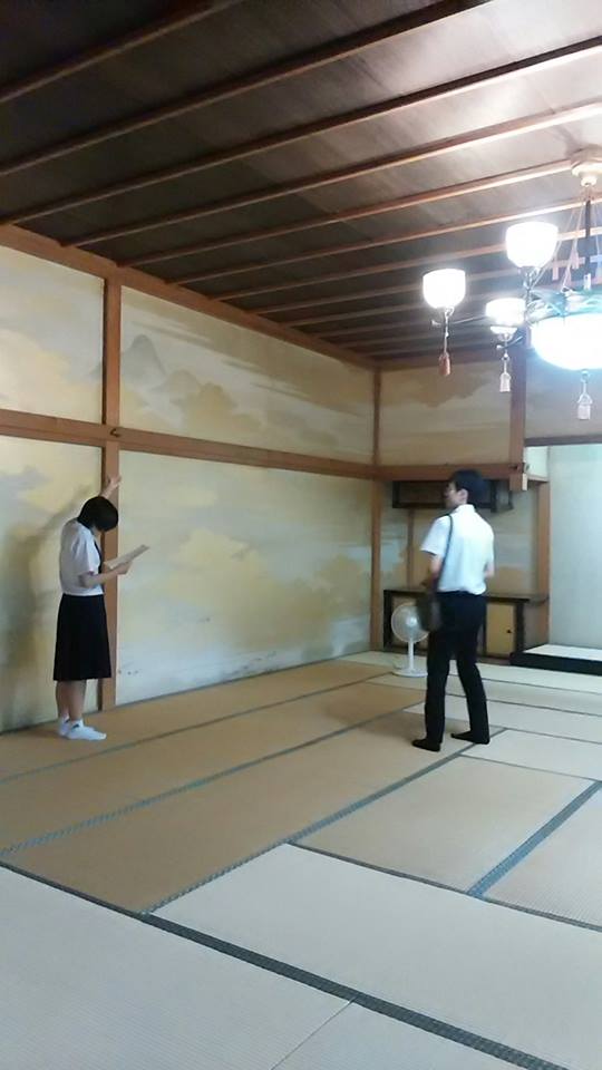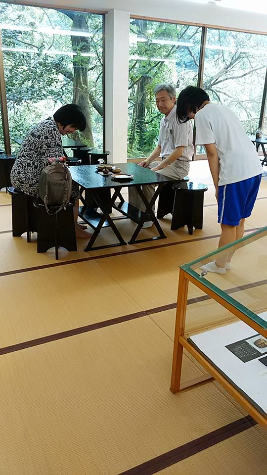 職場体験も今日が最終日です。お抹茶をお出しするのも上手になりました。館内の清掃や床の間の花を生けたりといろいろな日本の文化に触れる職場体験になったかな?暑い中ご苦労さまでした。 |