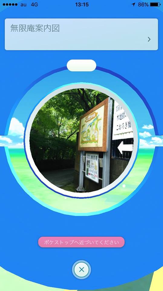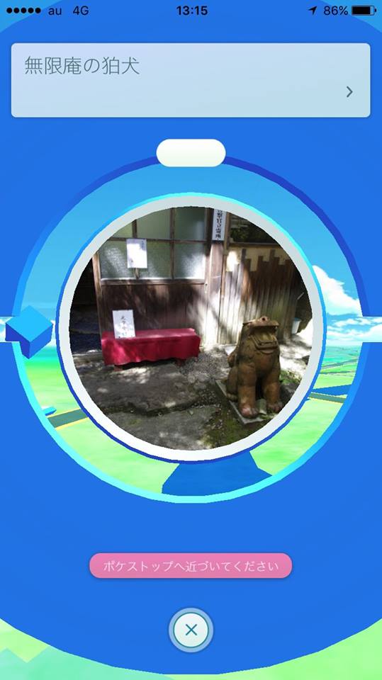 今日も暑いですね。無限庵玄関前は木陰になりますからちょっと休むのにいいですよ。その為か、今話題のポケモンGOのポケスポットになっているようです。無限庵正面入り口のあうんの狛犬やこおろぎ橋を上がって来た無限庵案内板のところでゲット!! |