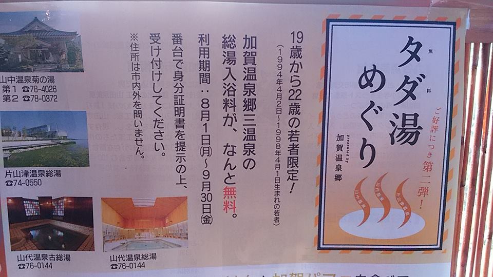 今日は日中かなり暑いです。そんな中加賀温泉郷寛平Nightマラソンがスタートしました。山中温泉の山中座をスタートし我谷ダムから県民の森を抜けてぐるっと山中温泉をひとまわりします。ランナーの皆さん頑張ってください。ゴールの後は菊の湯で疲れた身体を癒してください。 |