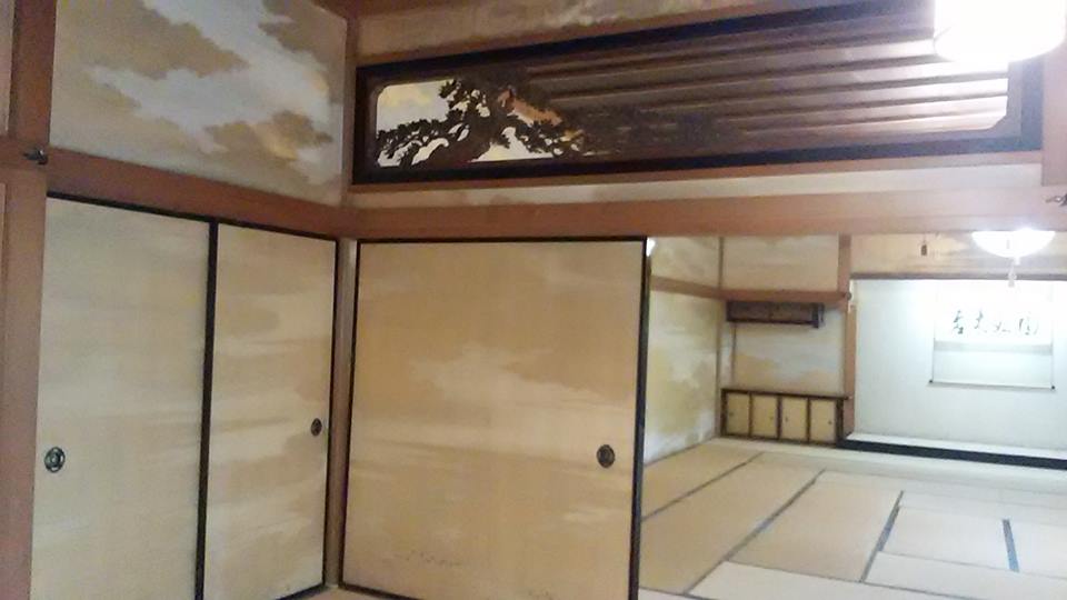 今日は中秋の名月です。今年は満月の2日前です。地球から一番近い身近な天体、月。無限庵御殿の間の欄間は松の一枚彫りで雲間に月と松樹です。お月見の習慣は日本のみのようです。36畳と次の間20畳の広々とした空間はまさに宇宙のようで、その中に月かあります。圓如太虚のお軸がぴったりですね。 |