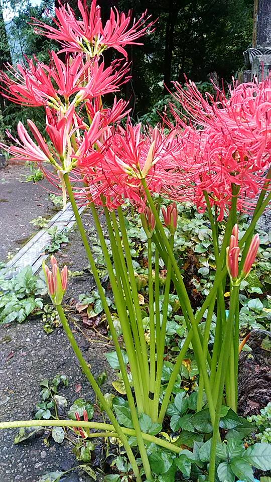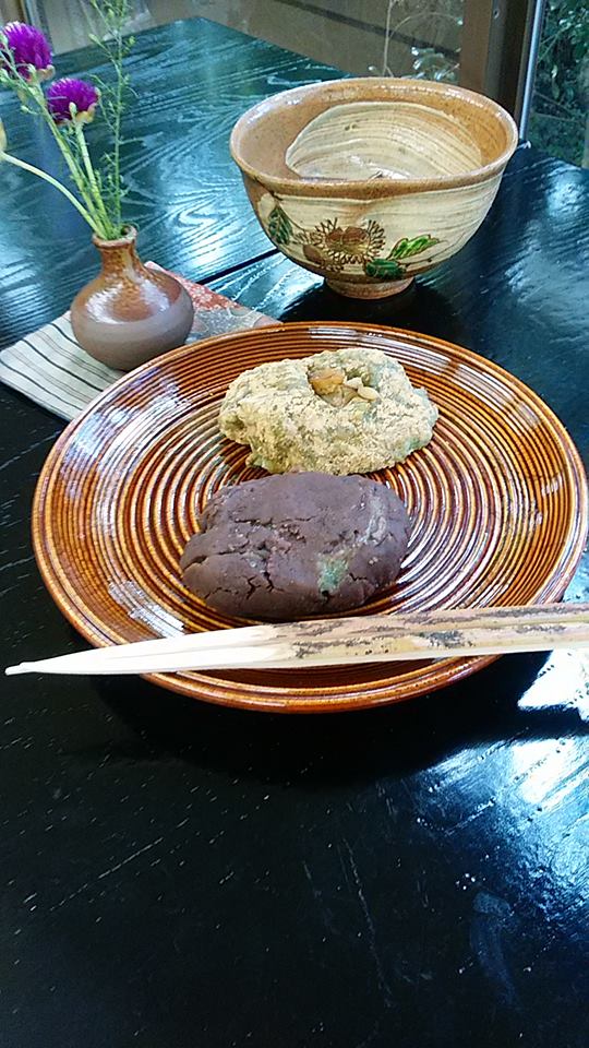 秋分の日です。暑さ寒さも彼岸まで。本当に過ごしやすい季節になりました。無限庵の庭園にもお彼岸にあわせたかのように彼岸花が咲きました。地元の手作りのあんこときな粉のおはぎでお抹茶をお召し上がりください。 |