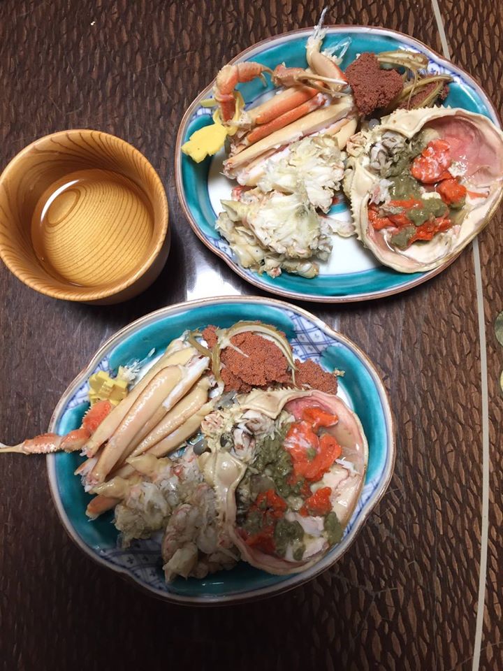 日本海の冬の味覚、蟹が解禁になりました!無限庵の玄関前の紅葉も鮮やかです。今週末の無限庵紅葉賀茶会の頃が一番の見ごろです。紅葉狩りと蟹!山中温泉を楽しむのに良い季節ですよ。